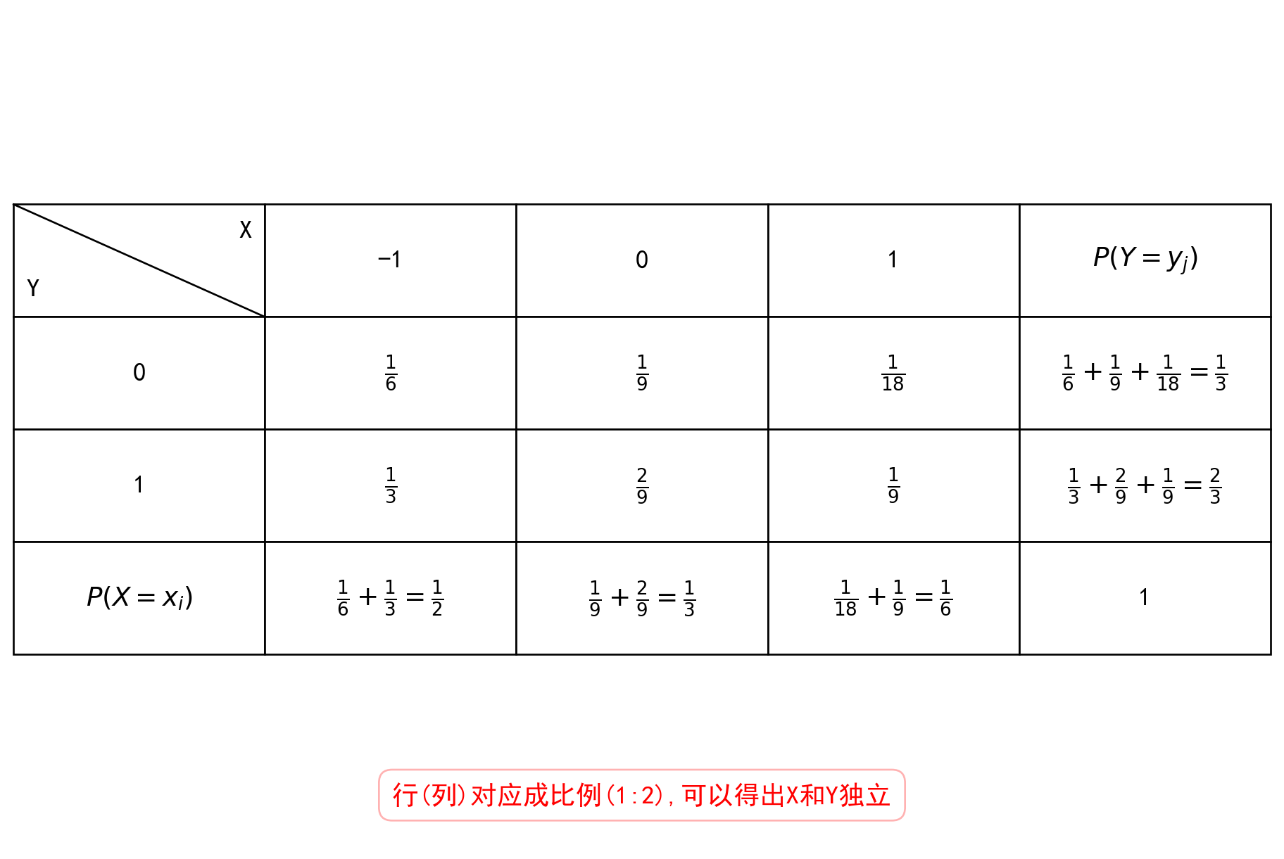 - 对随机变量 \(X, Y\), 有下列等价命题: \[ \rho_{XY} = 0 \Leftrightarrow Cov(X, Y) = 0 \Leftrightarrow EXY = EXEY \Leftrightarrow D(X \pm Y) = DX + DY \]